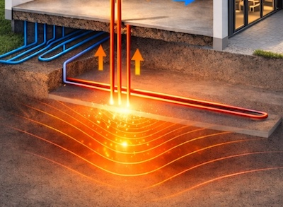 A fundamentally different and significantly more cost-efficient approach was developed by a Luxembourg-based researcher and developer, B.Sc. Eng. and physicist Edmond D. Krecké. His method directly exploits the near-surface temperature of the Earth generated by solar energy, rather than relying on deep geothermal extraction.